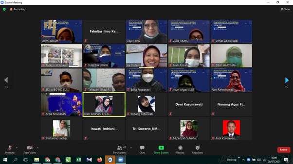 Rabu-Kamis (15-16 Agustus 2021) Tim Assesor BAN PT yaitu Dr. Eka Ananta Sidharta, Ak, C.A dari Universitas Negeri Malang dan Dr. Nur Fajri Asyik, SE, M.Si., Ak dari Sekolah Tinggi Ilmu Ekonomi Indonesia Surabaya telah melaksanakan Assesmen Lapangan secara Daring di Universitas Muhammadiyah Kudus pada Program Srata 1 (S1) Akuntansi. Kegiatan tersebut disambut hangat oleh …